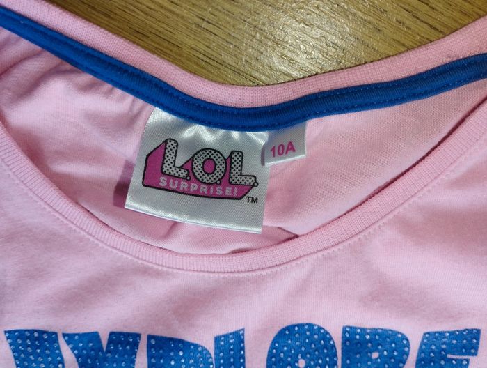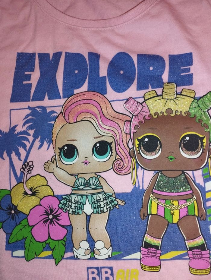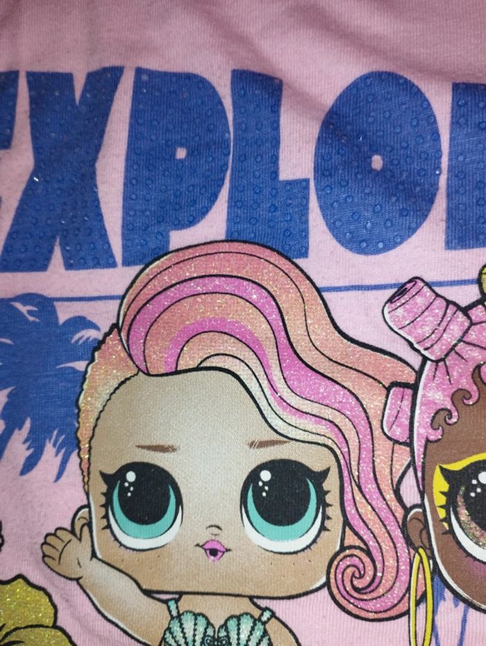 T-shirt manches courtes Marque L.O.L surprise Taille 10 ans avec paillettes et strass Composition polyester et coton à inclure dans un lot. Minimum de commande fixé à 3€ ... merci
