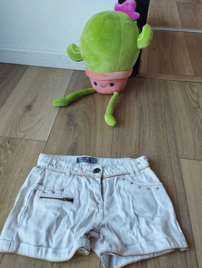 Short épais parfait avec des collants pour les saisons fraîches Marque orchestra Taille 8 ans Taille ajustable par élastique et boutons Composition stretch : coton et elasthane Clous et fermeture éclair décoratifs Liséré doré Coloris beige à inclure dans un lot. Minimum de commande fixé à 3€ ... merci