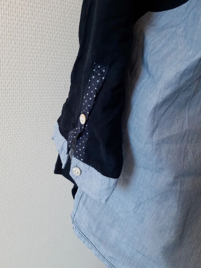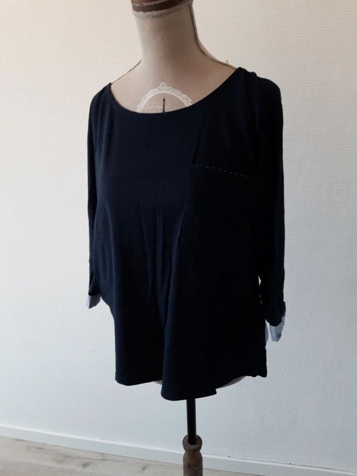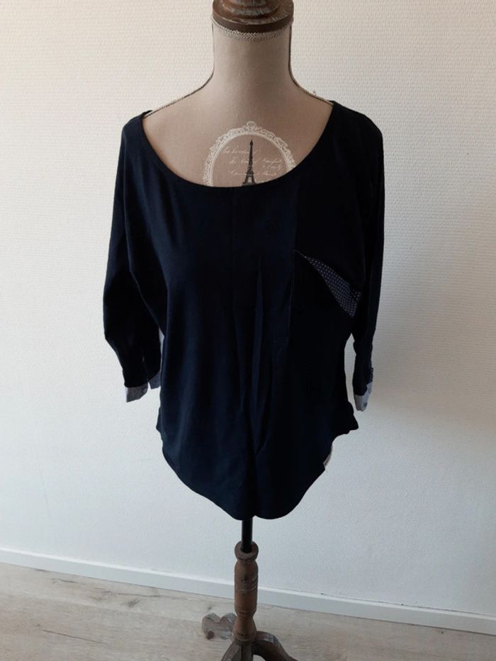 Taille 2 2 matières et 2 tissus Devant 50 viscose / 50 coton Dos 100 coton. 55 cm dos 52 cm aisselles à aisselles
