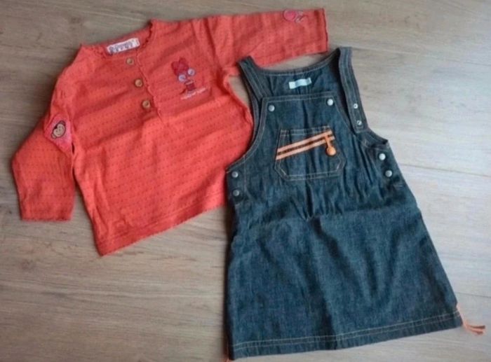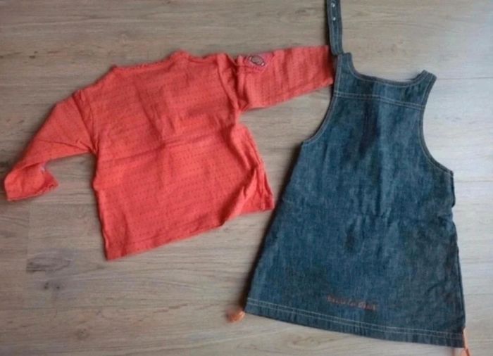 ensemble tenue bébé robe en jean obaibi et d'un haut orange la compagnie des petits 12 mois - photo numéro 1