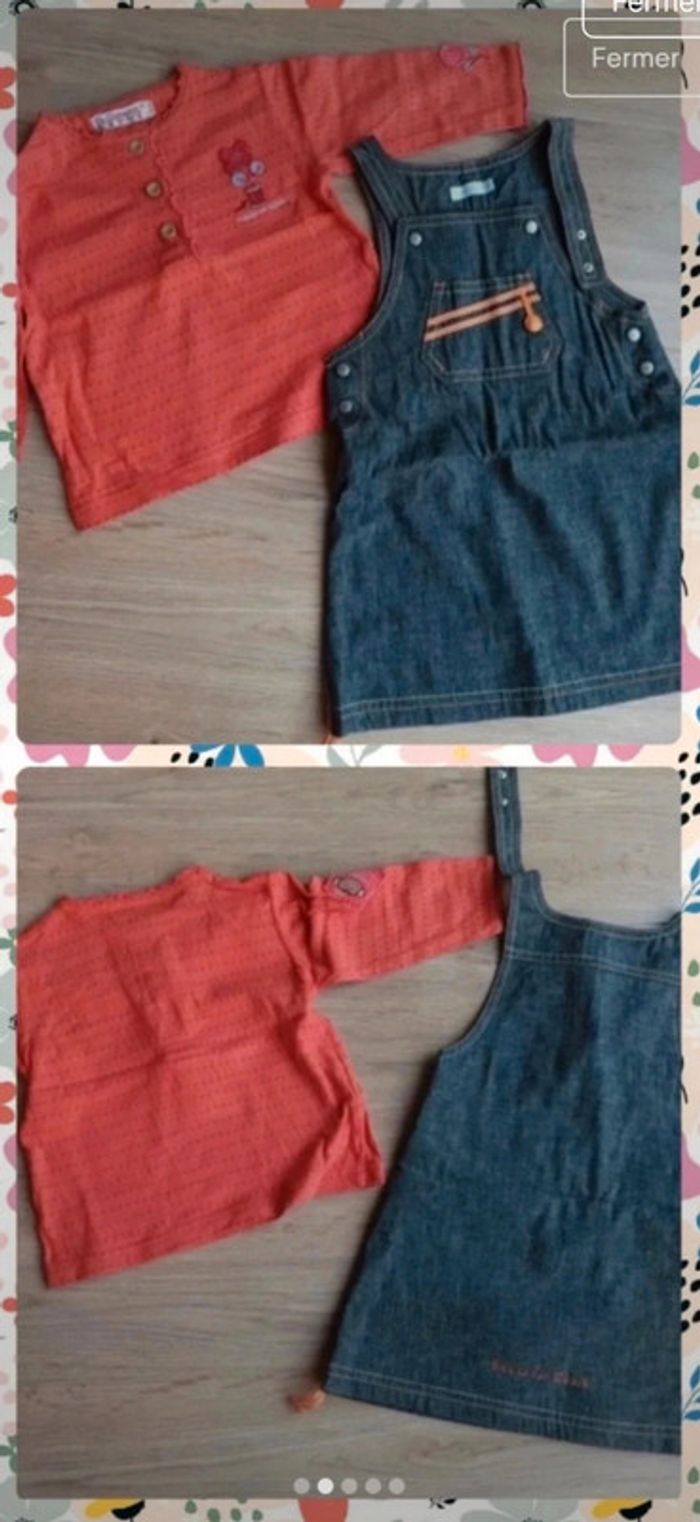 ensemble tenue bébé robe en jean obaibi et d'un haut orange la compagnie des petits 12 mois - photo numéro 2