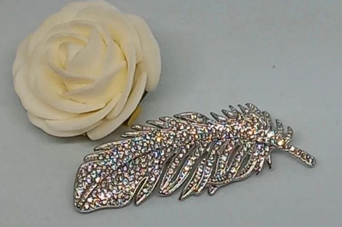Jolie broche plume à strass - photo numéro 1