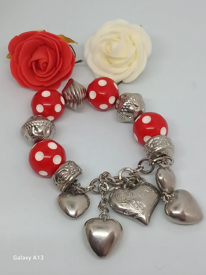 Joli bracelet rouge et argenté