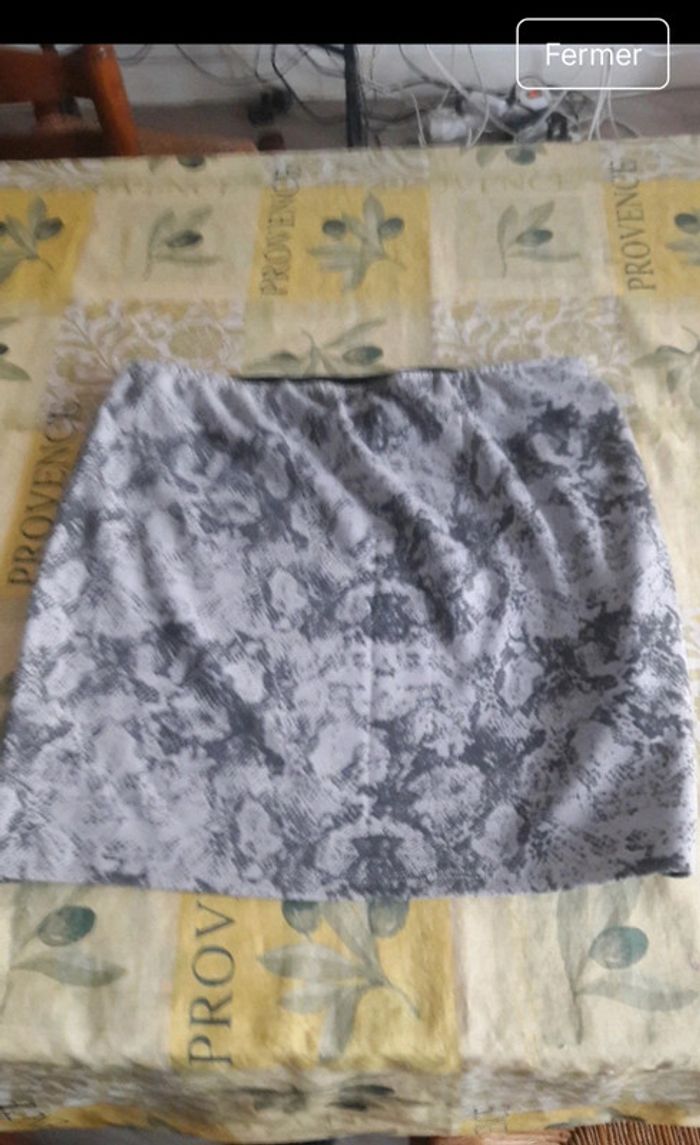 Jupe courte imprimé python peu porté. Gris. Taille 42. Très bon état. N'hésitez pas si question. #echelon1842