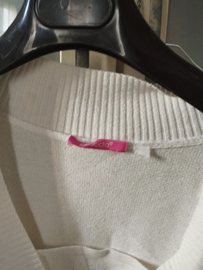 Pull blanc com en v - photo numéro 3