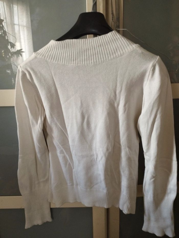 Pull blanc com en v - photo numéro 2