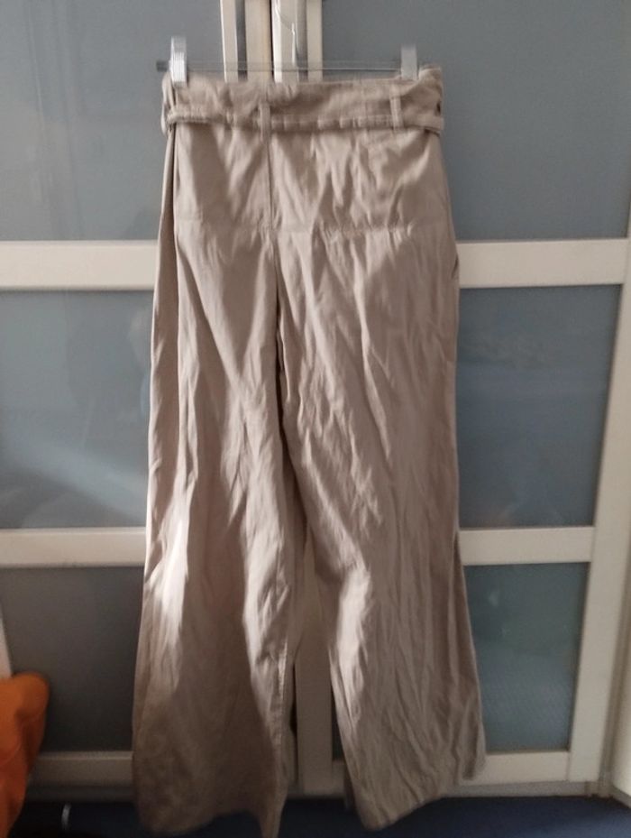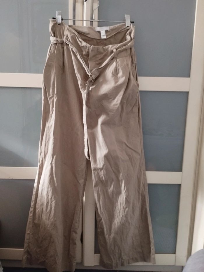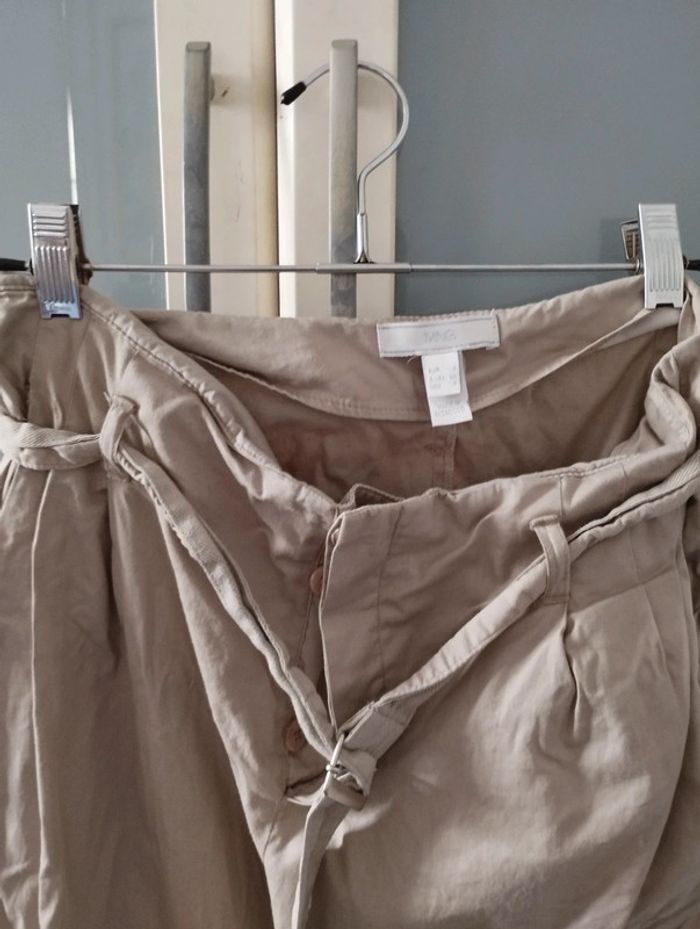 Pantalon coton beige assez large Femme par boutons et ceinture