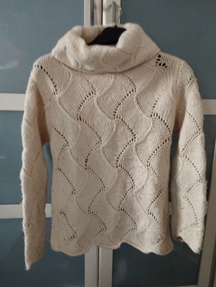 Pull grosses mailles crème grand col roule - photo numéro 1