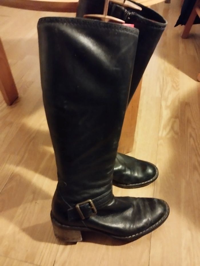 Une accroche sur la troisième photo Prévoir de refaire les talons mais elles restent portables dès maintenant Élastique en haut pour s'adapter au mollet Achetées 180€