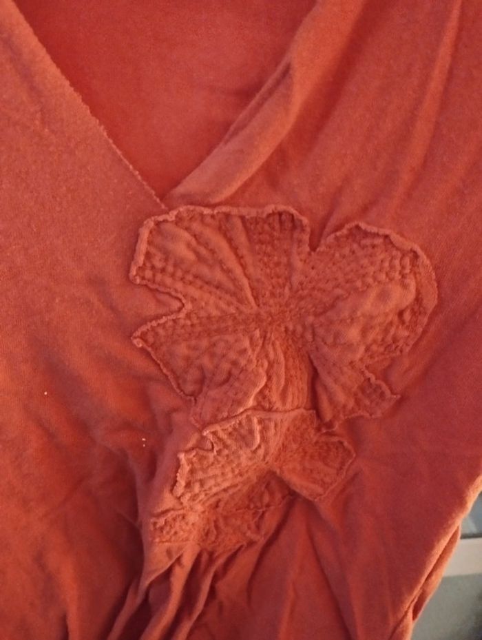 T shirt asymétrique avec jolie fleur brodée devant - photo numéro 4