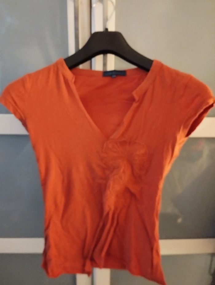 T shirt asymétrique avec jolie fleur brodée devant - photo numéro 1