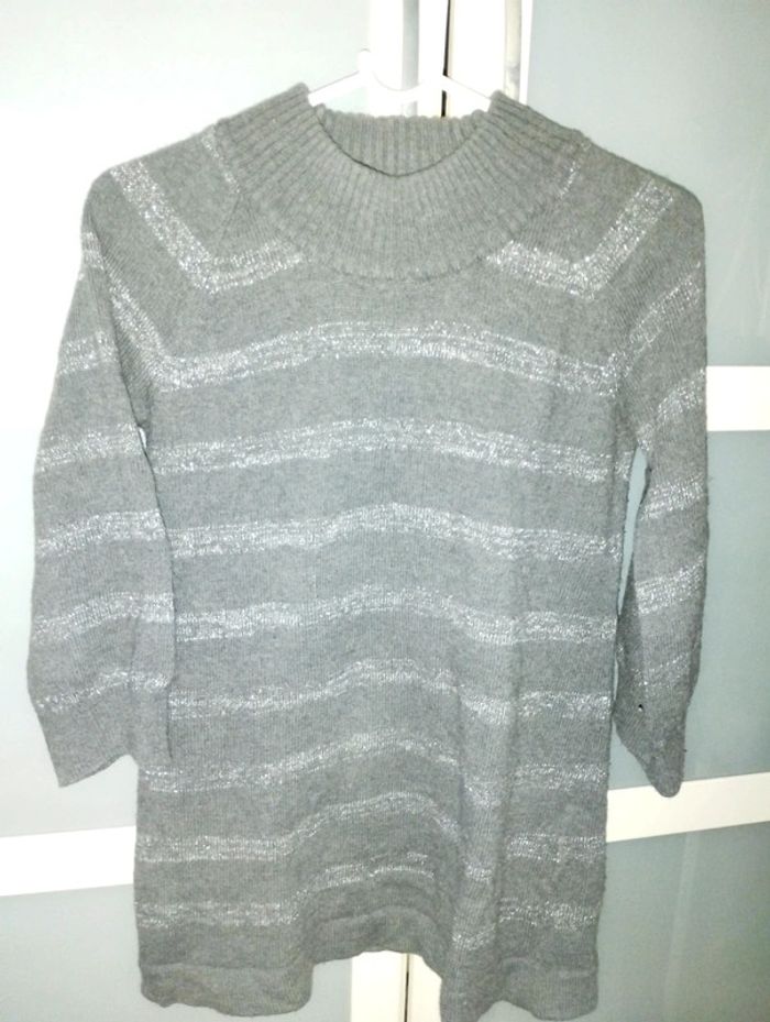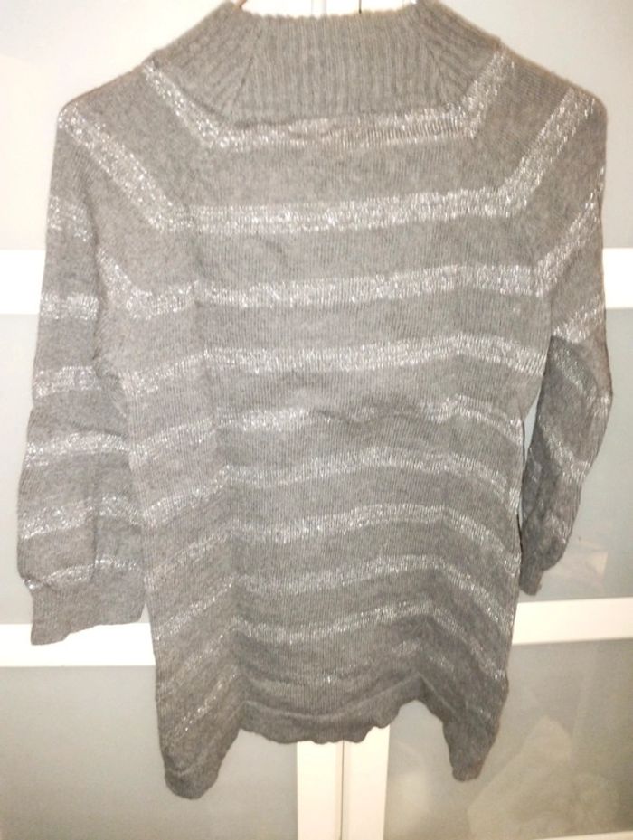 Pull gris avec rayures pailletées argent manches 3/4 - photo numéro 1