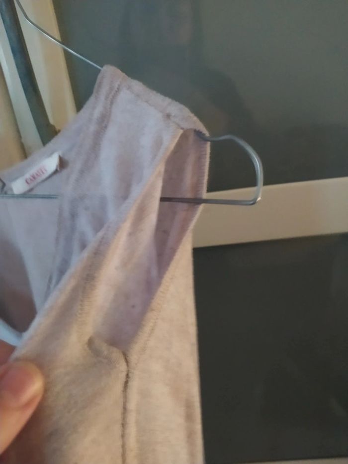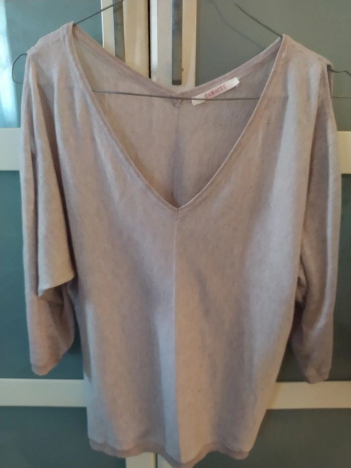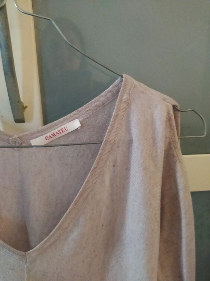 Rose beige rosé grisé Pas de photo porté car trop petit pour moi Col en V devant et dos Ouvert au niveau des épaules