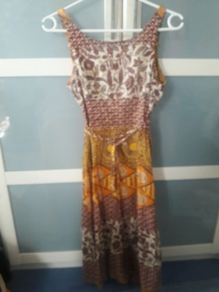 Robe très pratique et originale avec ses motifs. Se ferme avec liens en mode portefeuille. Pas de photo portée car trop petit pour moi