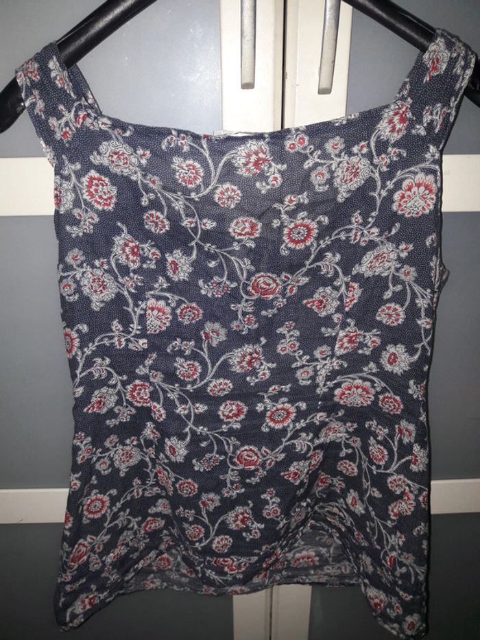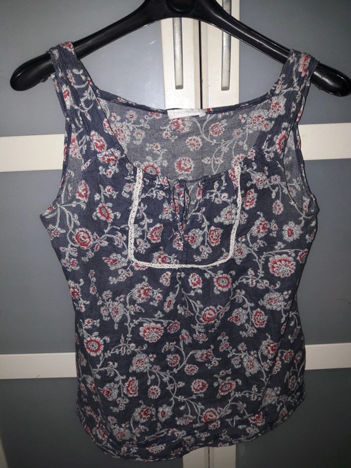 Joli motif pour porter avec un jean bleu Dentelle au niveau du décolleté Lien à nouer au niveau du décolleté