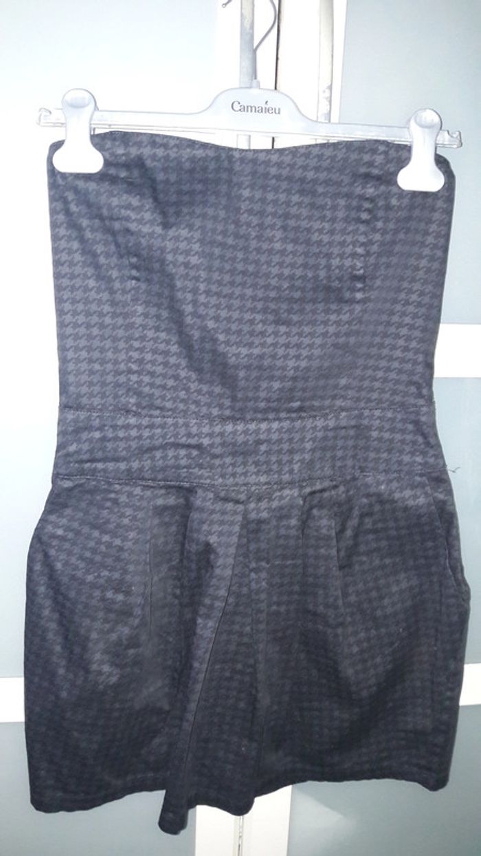 Jolie robe bustier noire courte à motifs gris Poches sur les côtés Pas de photo portée car trop petite pour moi