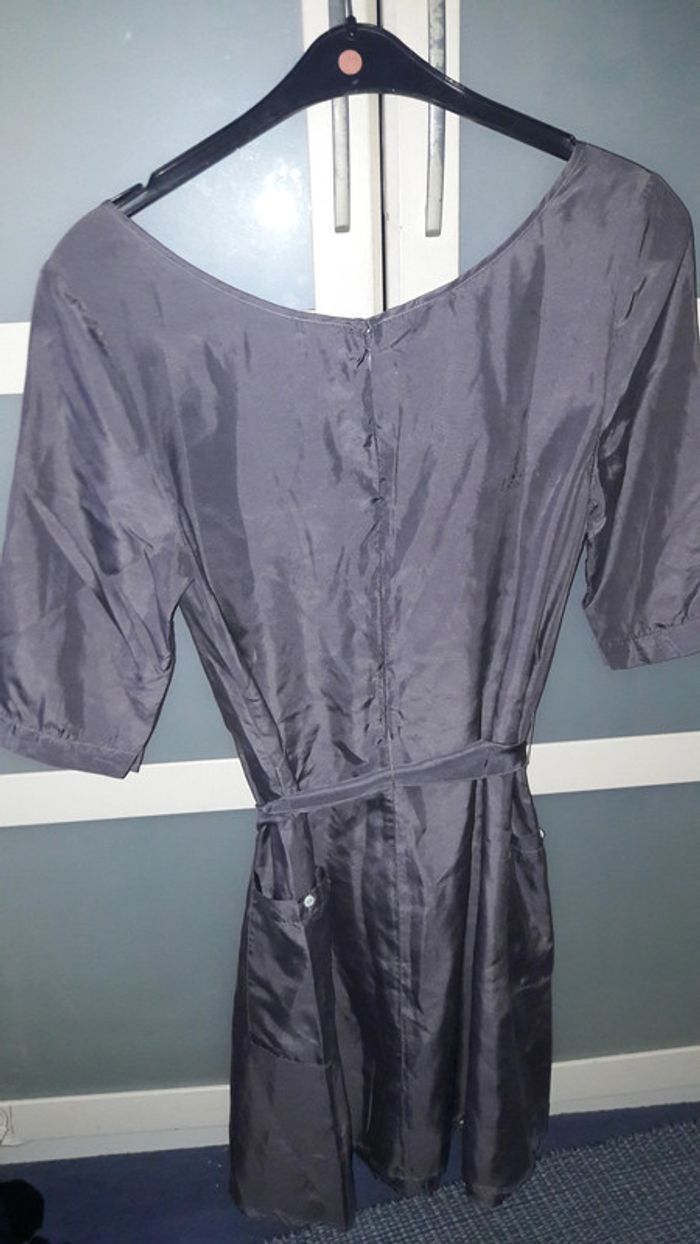 Robe en soie taupe fluide Avec poches plaquées sur le devant et ceinture à nouer Pas de photo portée car trop petite pour moi