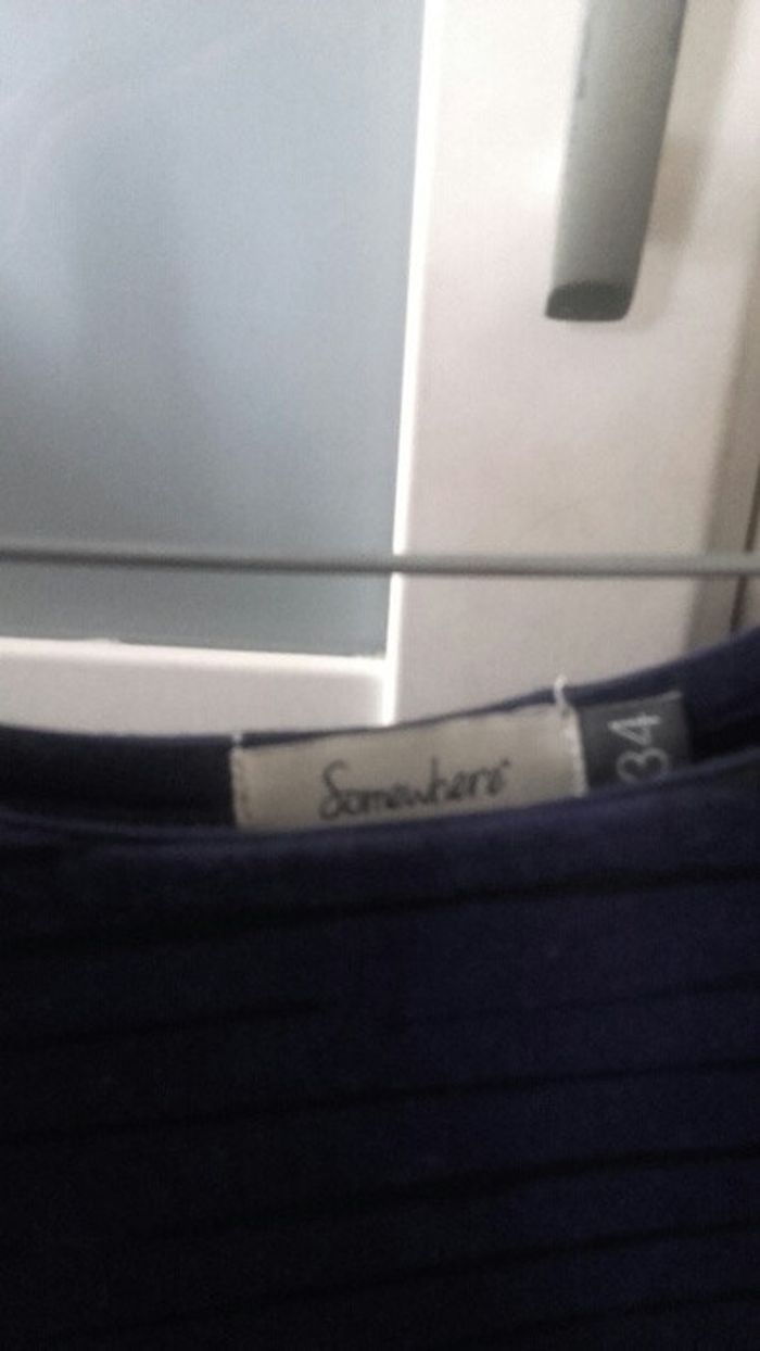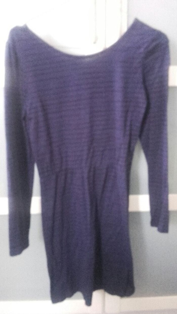 Robe bleue marine avec rayures noires Pas de photo portée car trop petite pour moi Élastique au niveau de la taille pour la souligner #marinière