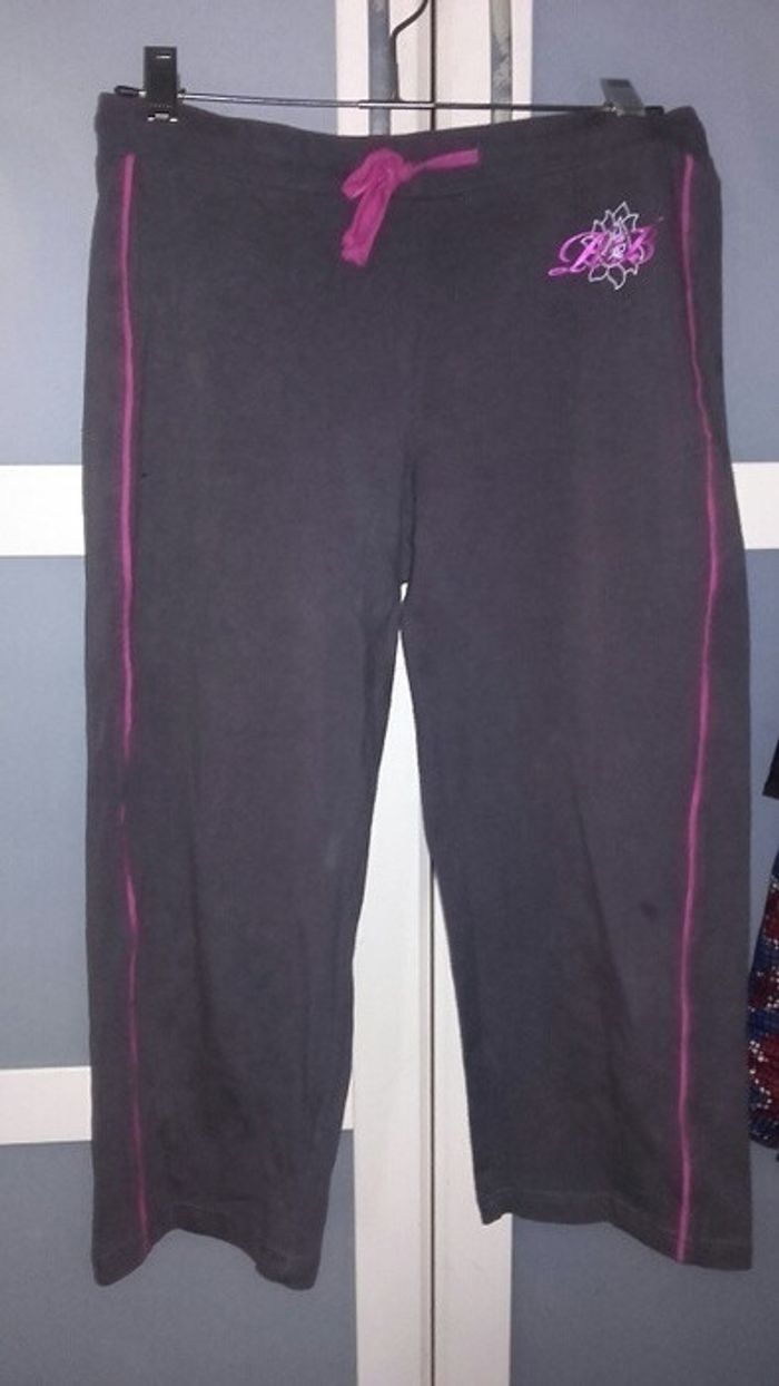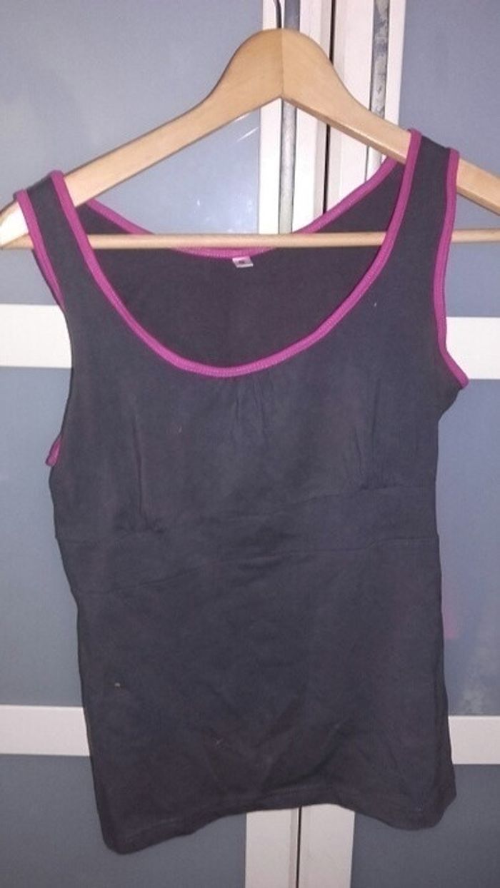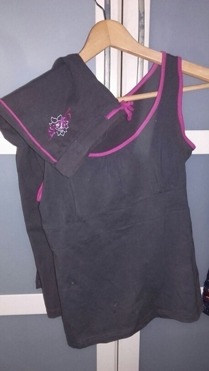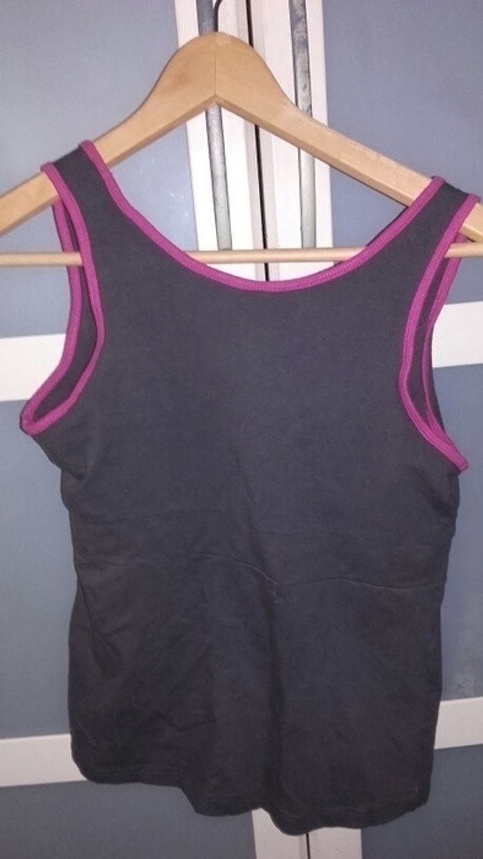 T shirt avec brassière intégrée et pantacourt lien à serrer à la taille Mauve bordé de rose fushia Bandes sur les côtés #sportwear