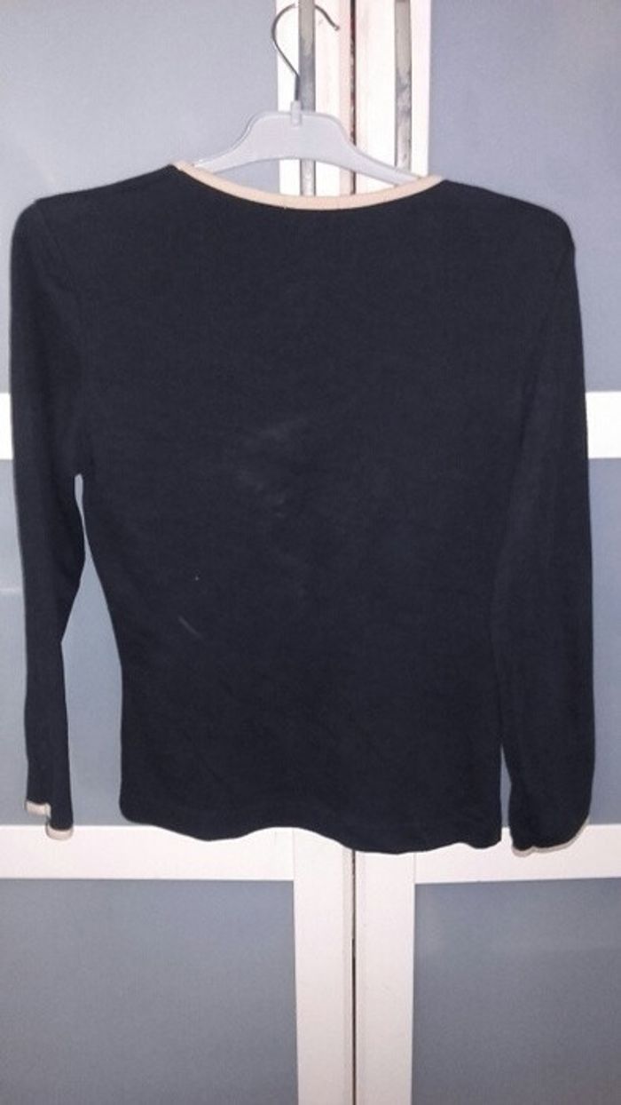 Tee shirt noir, col et poignets beiges - photo numéro 2