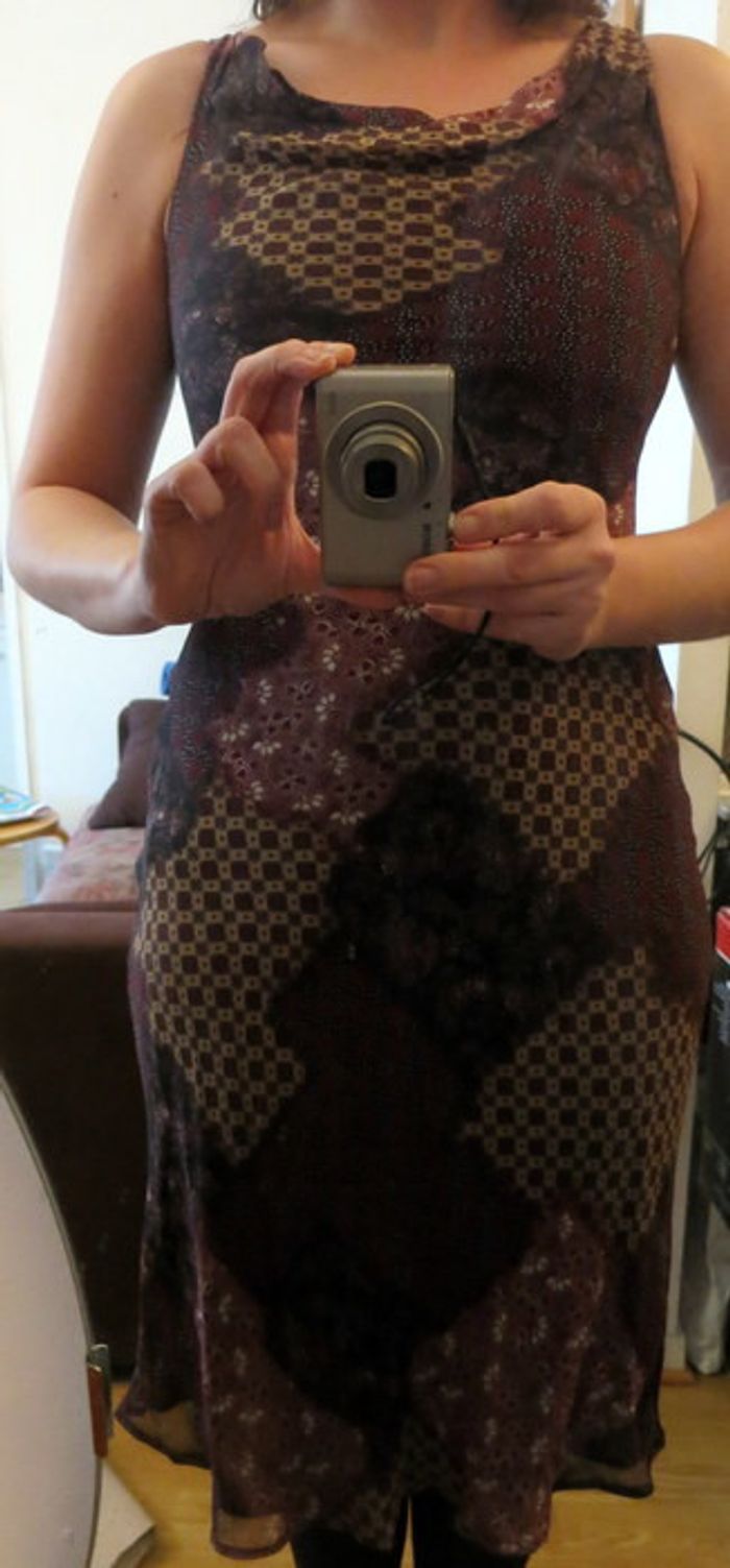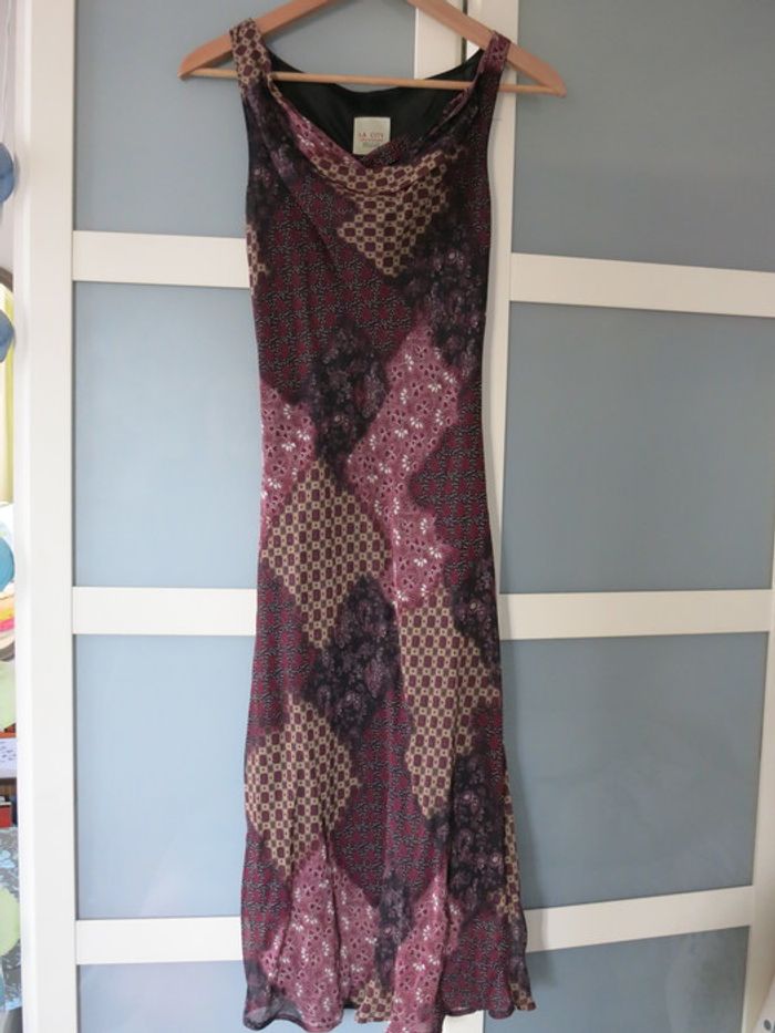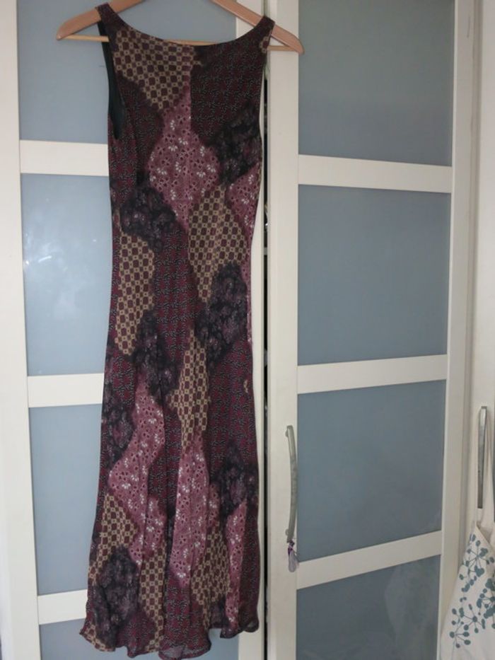 Jolie robe motif patchwork ajustée à la taille longueur sous le genou 100% polyester Pas d'échanges car je cherche à financer mes voyages ;-)