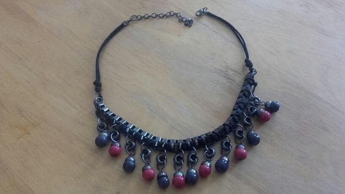 Métal, plastique et lien cuir Systeme de chaîne réglable #original #rougeetnoir