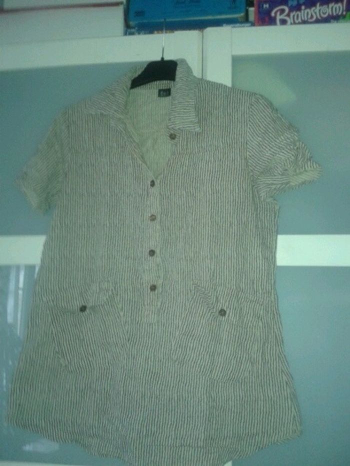 Chemisier beige rayé - photo numéro 1