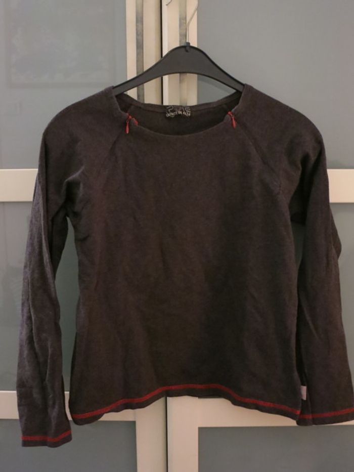 Surpiqûres rouges Deux fermetures éclair rouges en biais au biveau du col 95 % coton 5% élasthanne Pas d'échanges car je cherche à financer un voyage ;-)