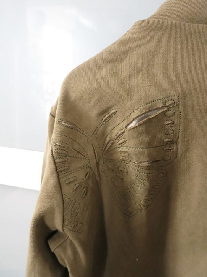 Kaki avec motif papillon au dos sur l'épaule gauche 100 % coton Pas d'échanges car je cherche à financer un voyage ;-)