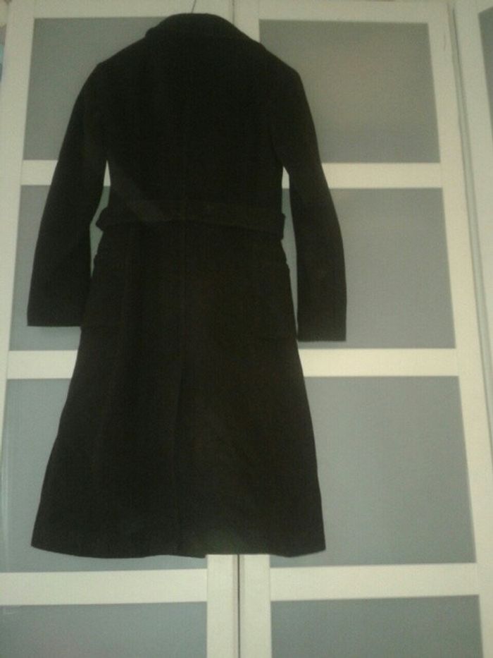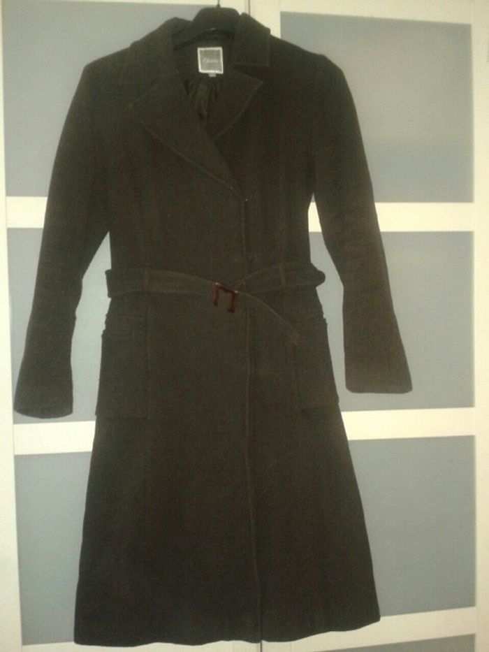 Manteau longueur aux genoux Col en V Double jeu de pressions Ceinture à nouer Deux poches plaquées sur le devant Entièrement doublé