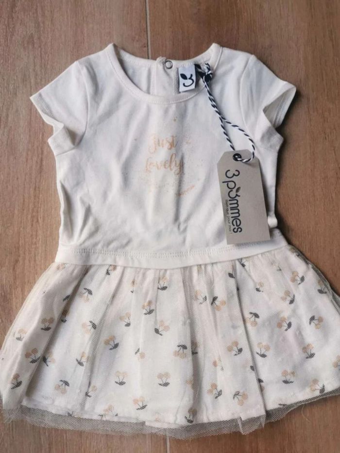 Jolie robe à  MC  et  tulle 3  Pommes  3/6  mois neuve