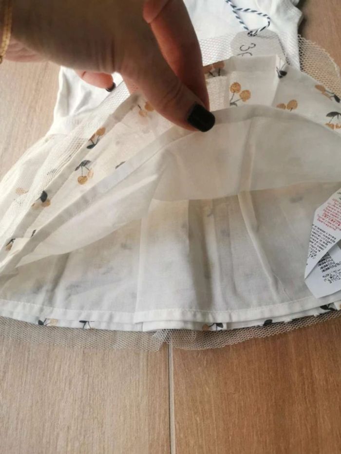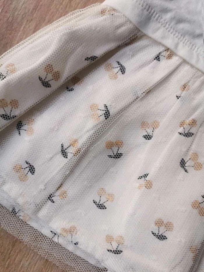 Jolie robe à manches courtes blanche et tulle Motifs cerises dorées Taille 3/6 mois 3 pommes Neuve avec étiquette #mabiquette10fille3mois #mabiquette10fille6mois