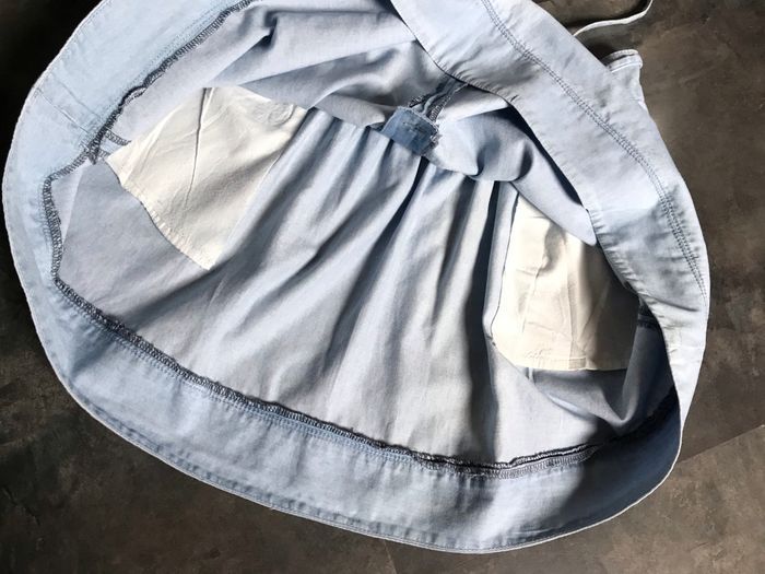 Jupe en jeans léger 2 poches Fine ceinture à nouer Taille 36 La ceinture mesure à plat 35,5 cm Longueur 42 cm Pimkie