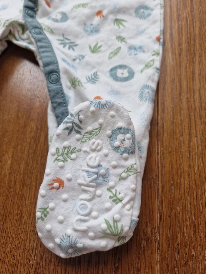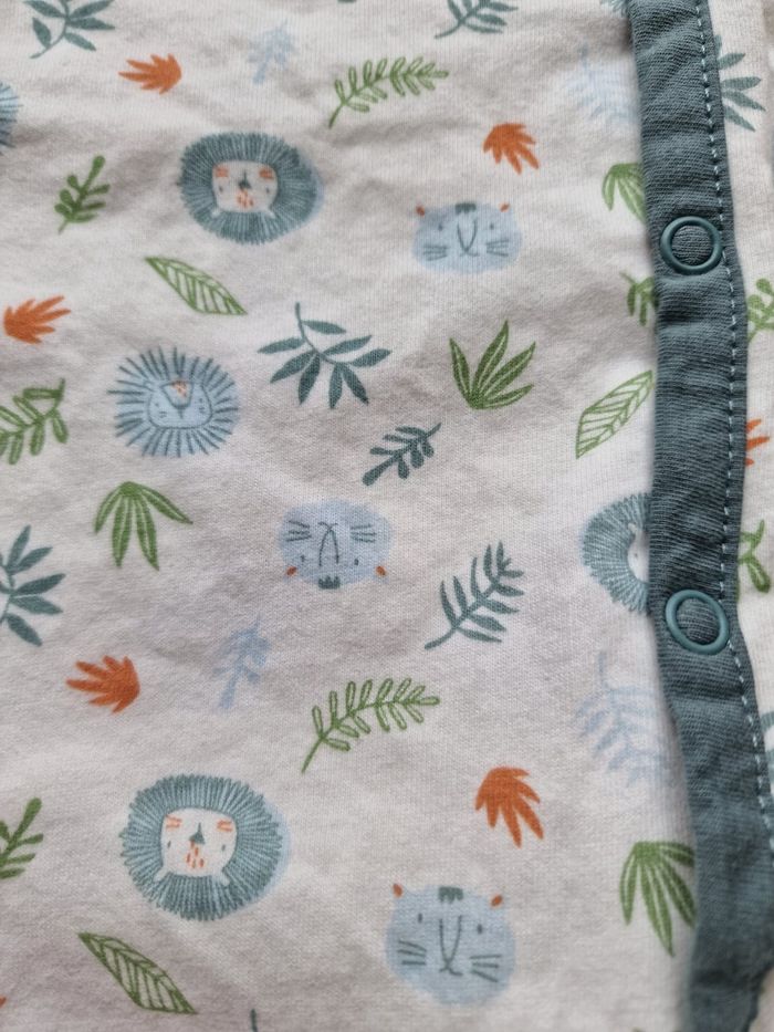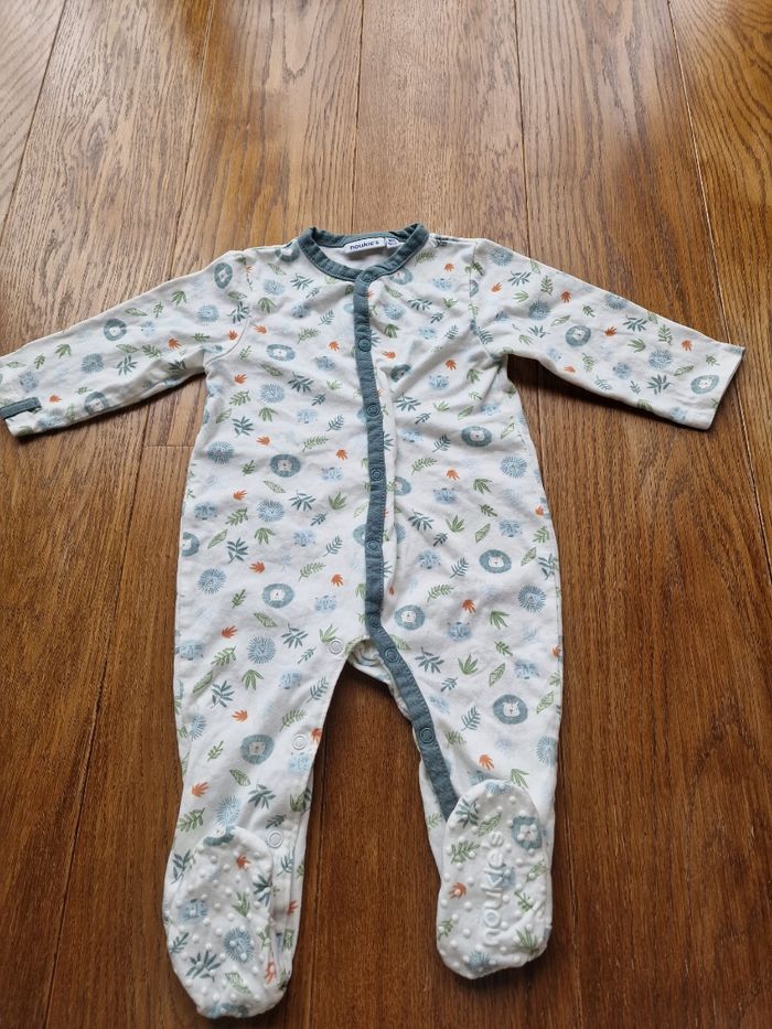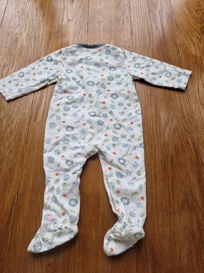 Très joli pijama 1 pièce avec pieds dort bien. Motifs animaliers tête de lion 100%coton Fermeture à pression facile d'ouverture Marque Noukie's 9 mois 74 cm !!! Réductions si achat de plusieurs articles