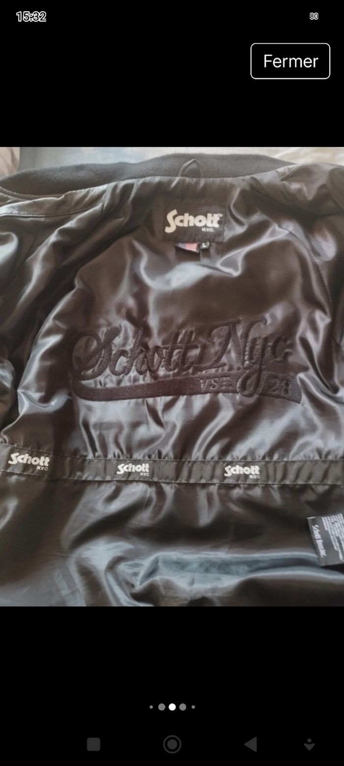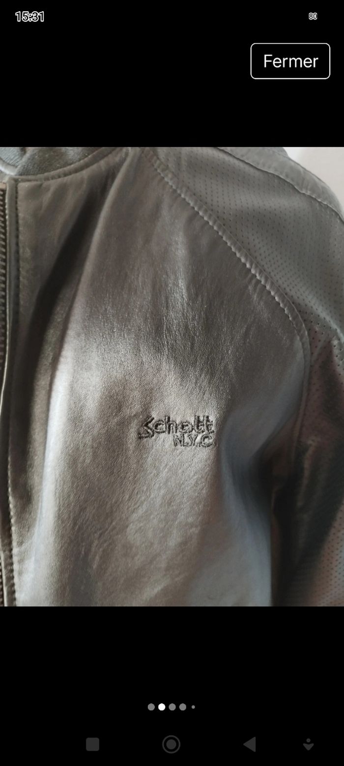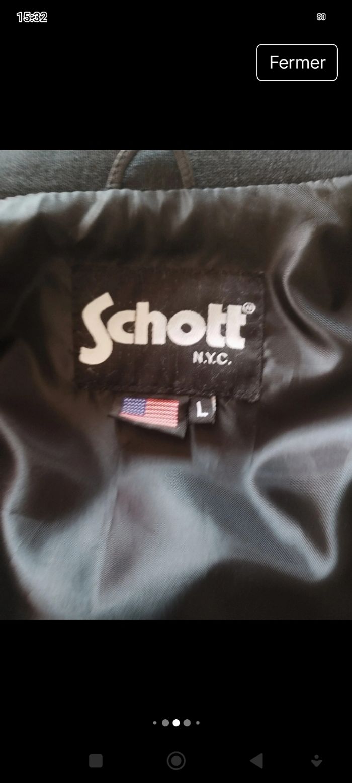 Veste blouson en cuir homme de marque Schott en très bon état sauf déchiré au bras à retoucher