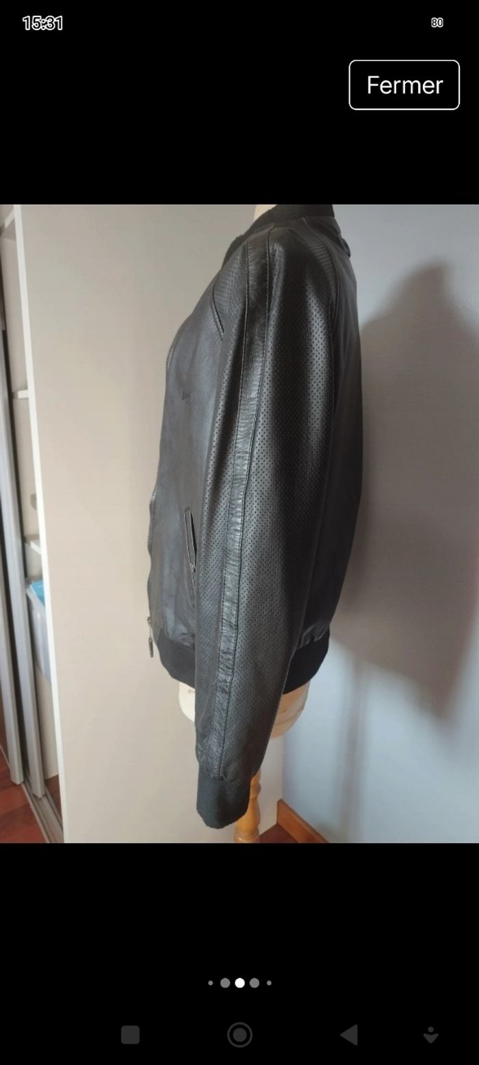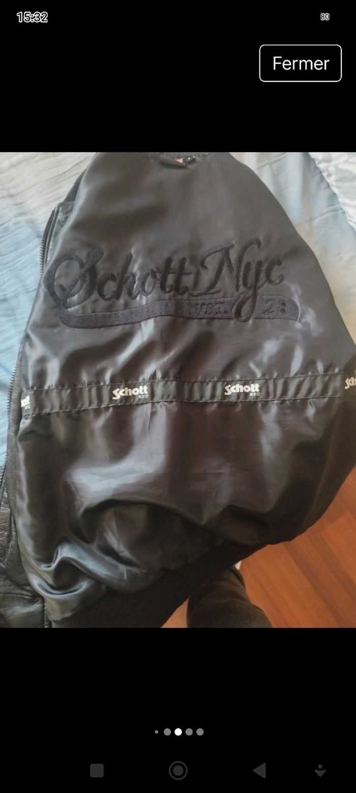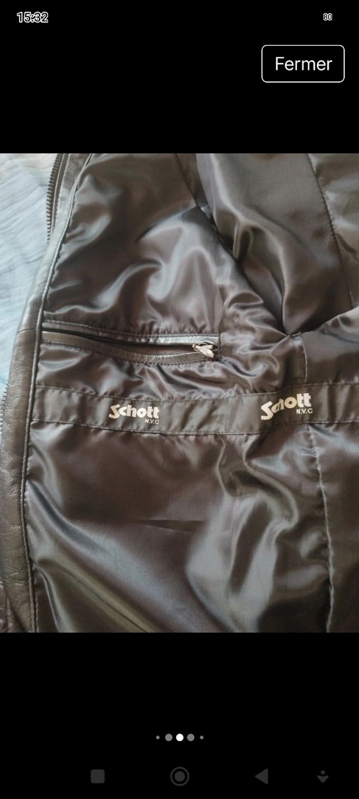 Veste blouson en cuir homme de marque Schott en très bon état sauf déchiré au bras à retoucher