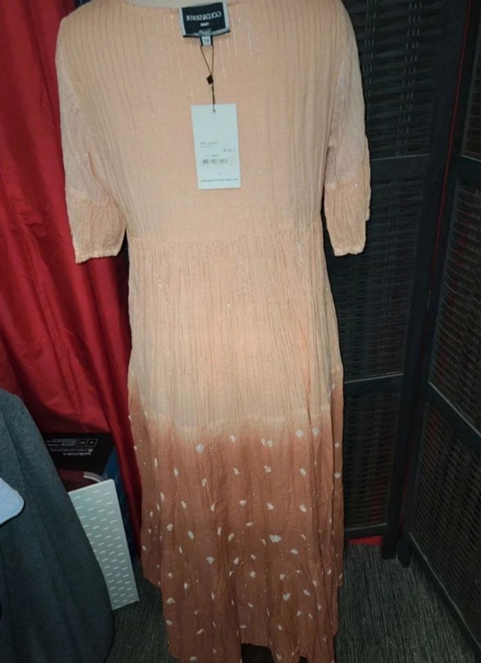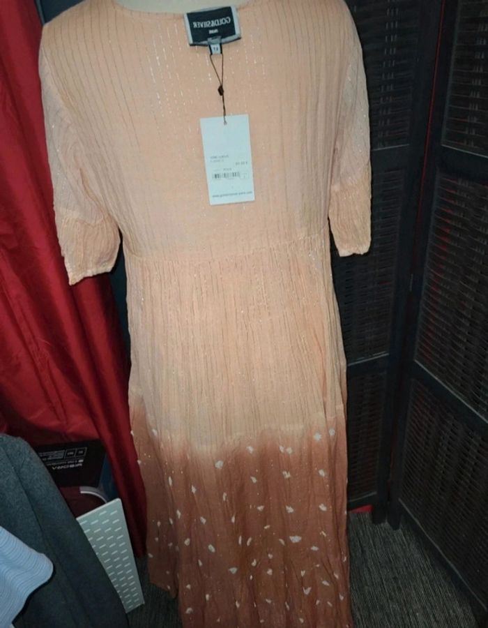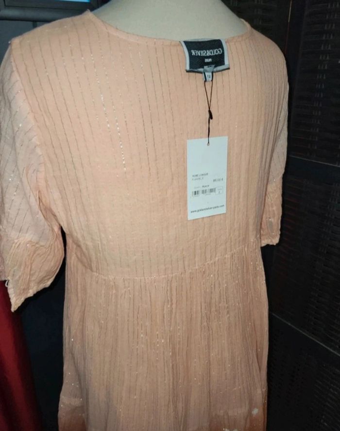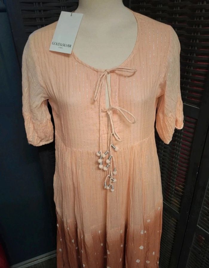 Robe neuve taille 2 , 38/40. Magnifique !!! Doublure sur le bas, manches transparentes. Fermeture poitrine liens. Couleur pêche Prix de vente 89€ #A2life_taille38 #A2life_taille40