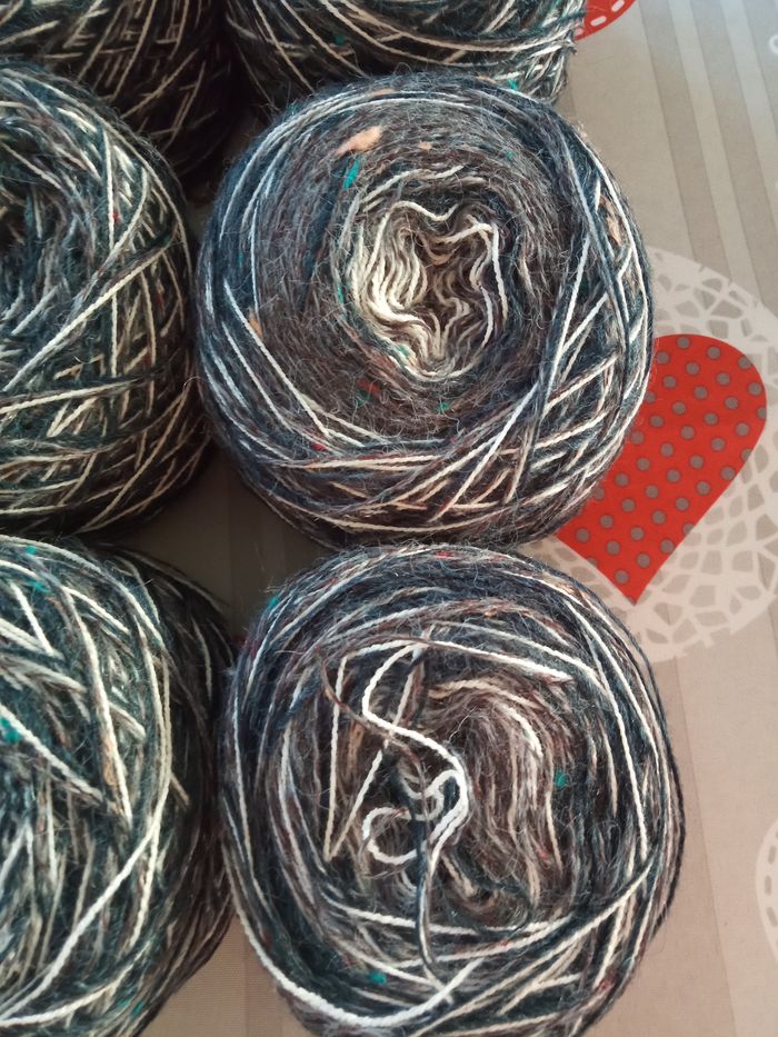 Lot de 6 Pelotes Fantaisies (500g) Couleur: multicolore 3 fils fins de taille différente au total 500g Lot en parfait état