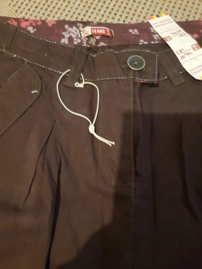 Pantalon fille marron, jolies formes, pinces, poches , fils argentés #albo75017vetementfille14ans