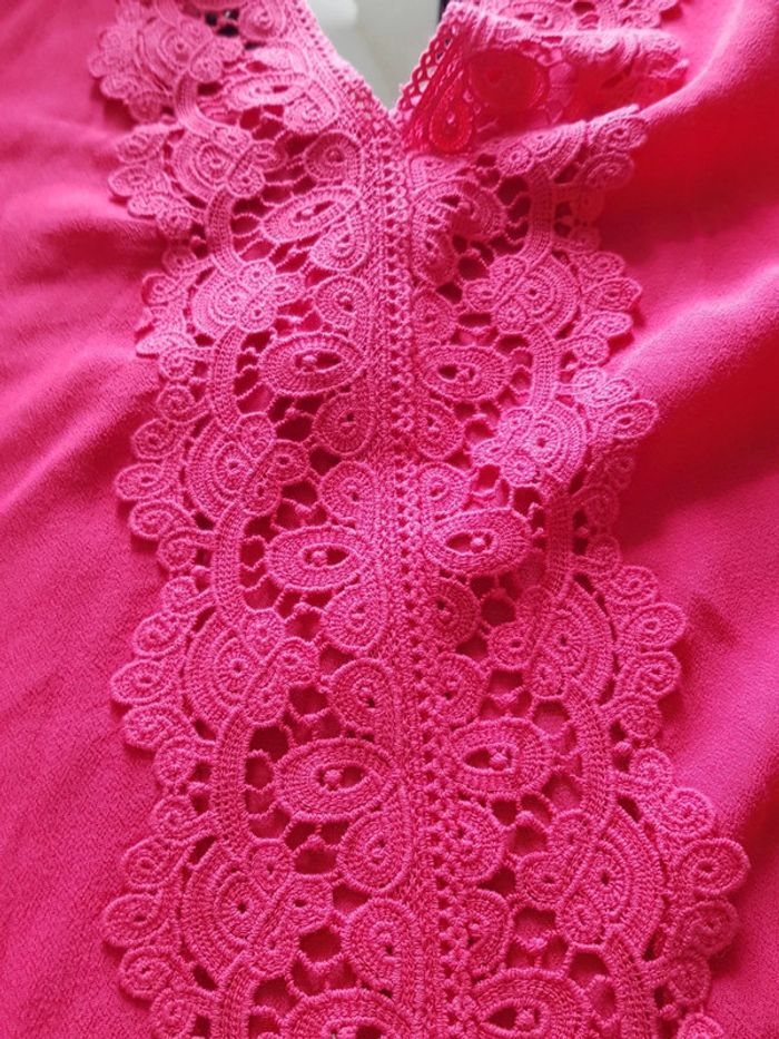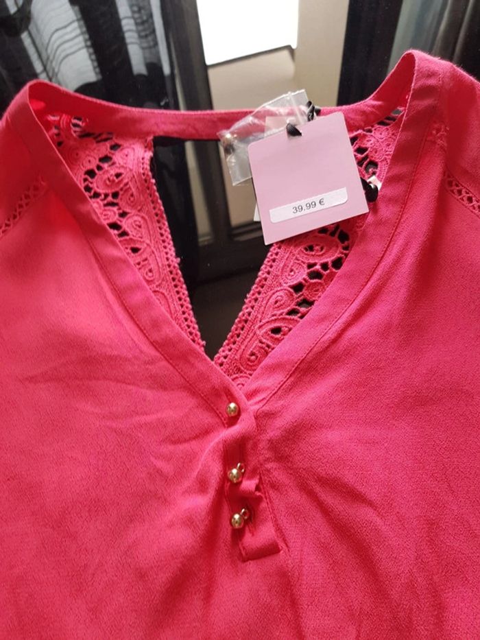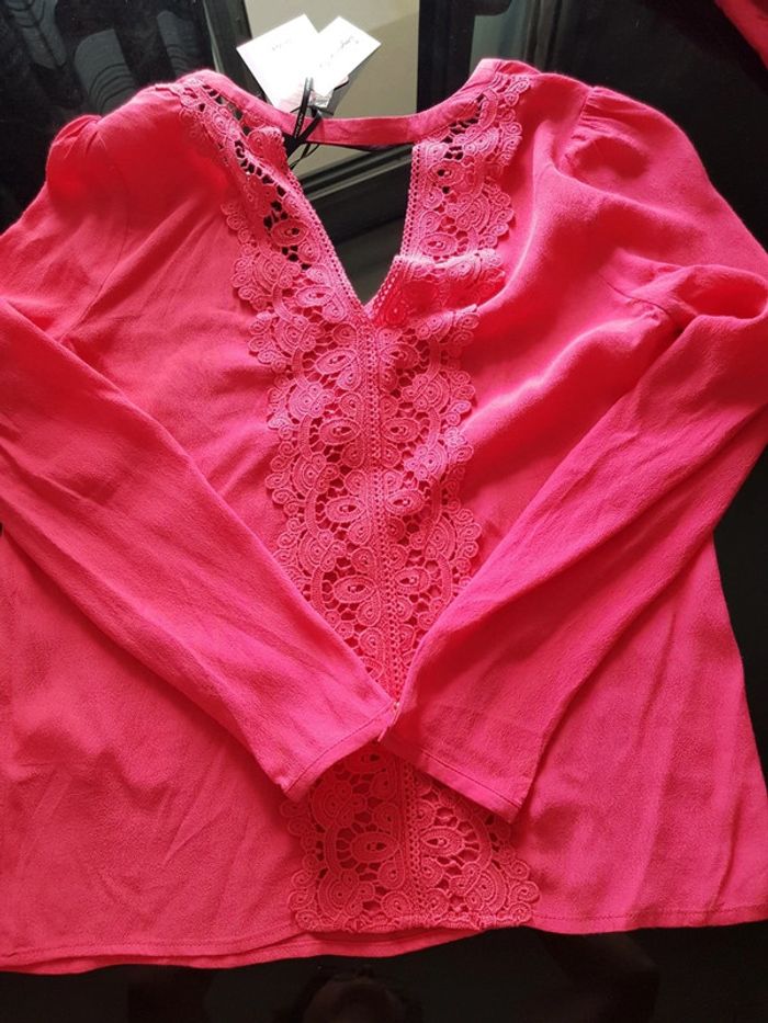 Neuf avec étiquette, décousue bras droit réparée , dernière photo D'où le petit prix Etiquette 40 € Tissu agréable, dos ouvert décoré dentelle, boutons dorés #albo75017vetementfemme36