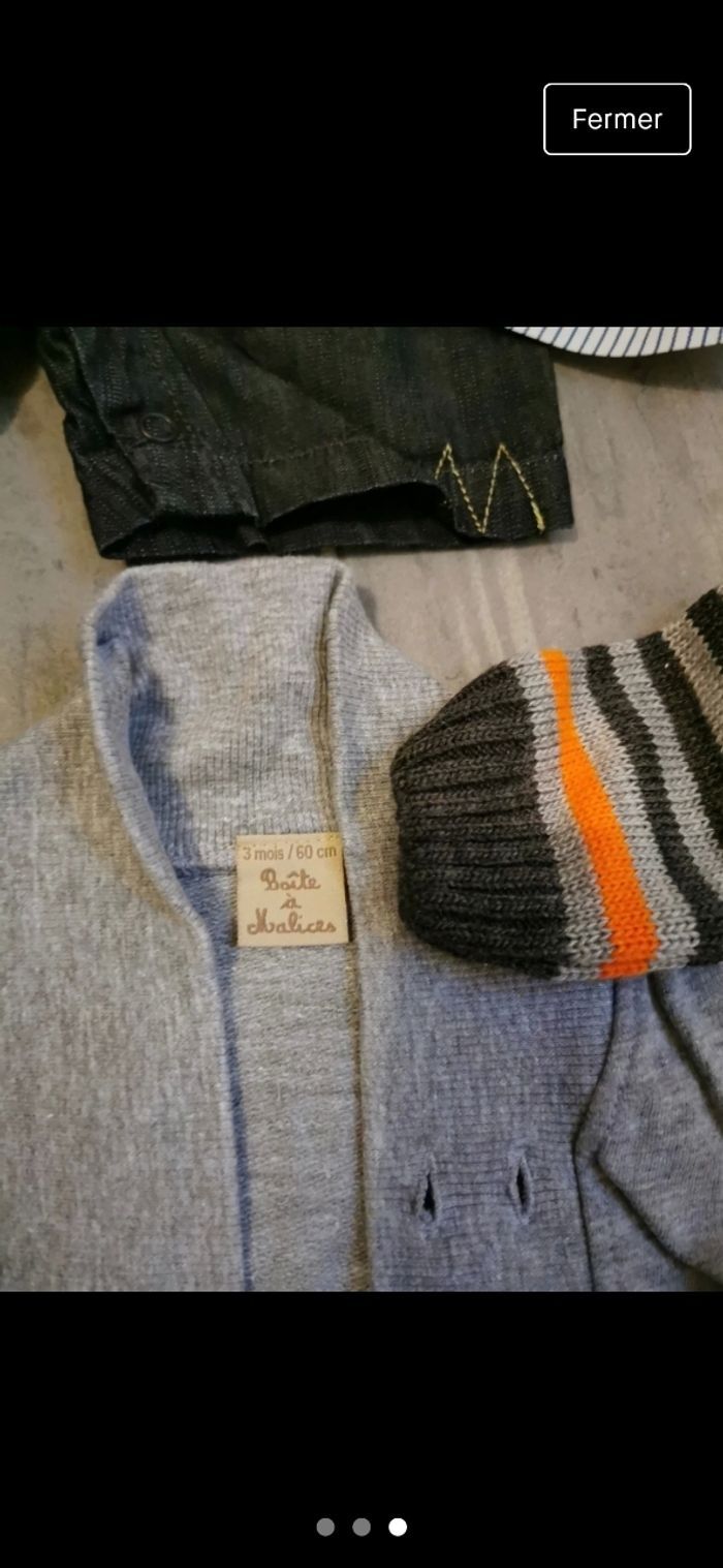 Lot de vêtements comprenant 12 pièces 3 mois dont des salopettes, gilets, pantalons en très bon état. Plusieurs marques