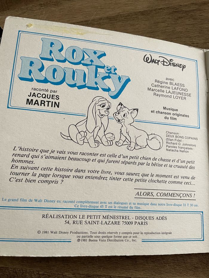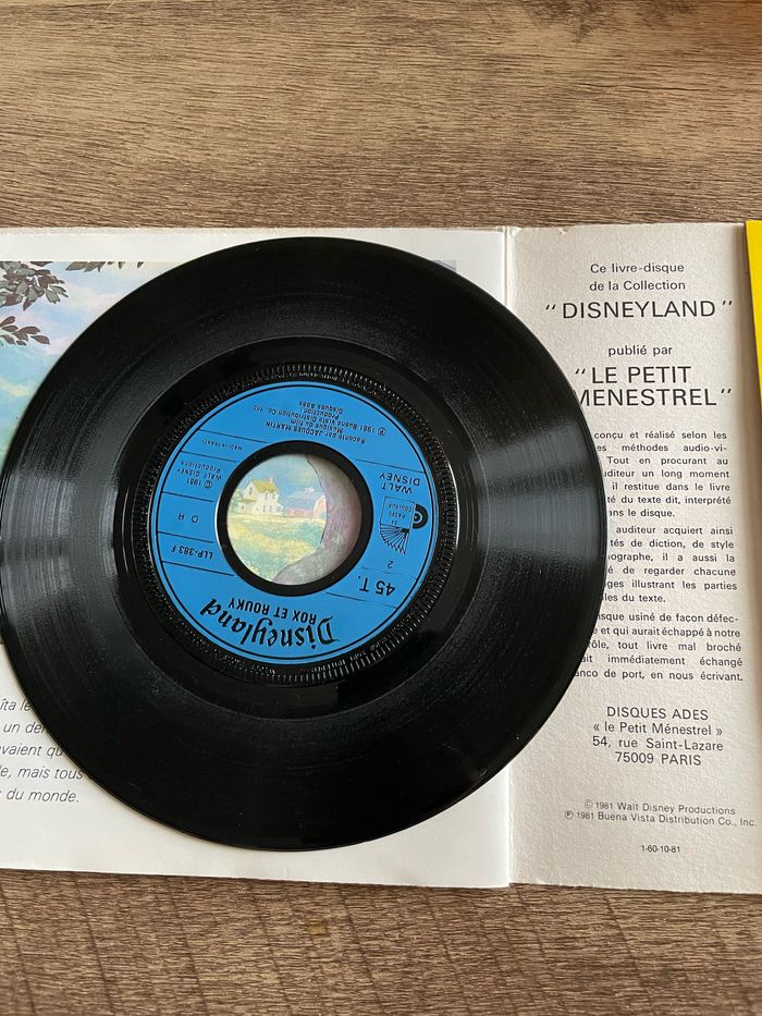 Rox et Rouky Walt Disney Livre disque le petit ménestrel Vinyle 45 T testé 1981 Réduction automatique sur les lots