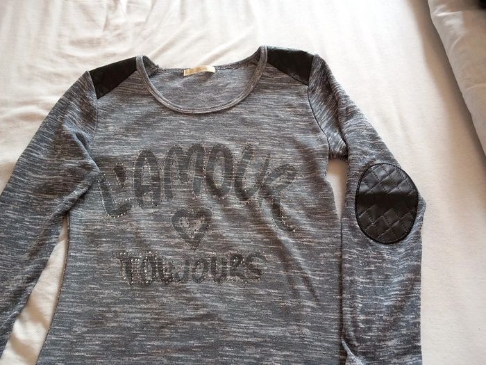 Tee shirt manches longues.  Bleu chiné - photo numéro 5