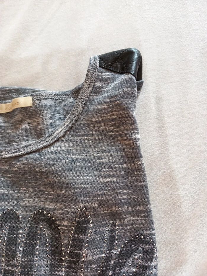 Tee shirt . Strass. Bleu chiné