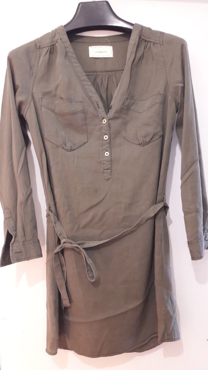 Robe tunique. De couleur Kaki. Petite tâche sur le devant (voir photo)