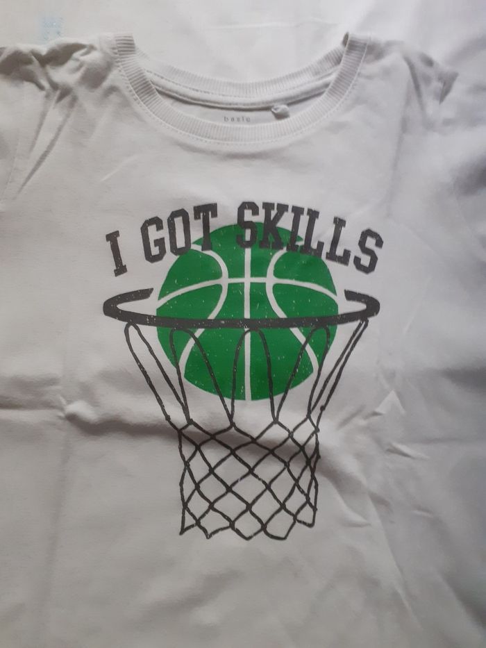 Tee-shirt blanc motif panneau de basket et ballon vert