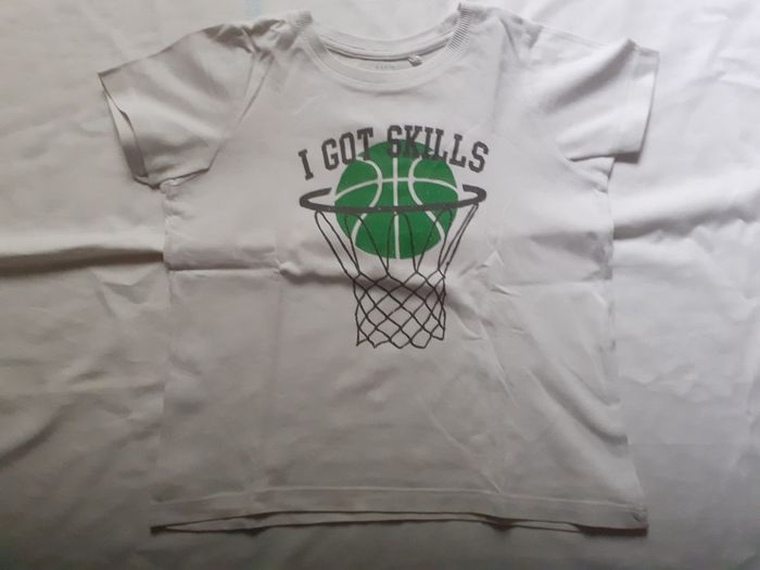 Tee-shirt blanc motif panneau de basket et ballon vert 2/3 ans