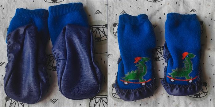 Chausson bleu marine avec dessin d'un dinosaure en très bon état sans marque pour bébé taille 0/6 mois #neezia33240chaussongarçon0_6mois