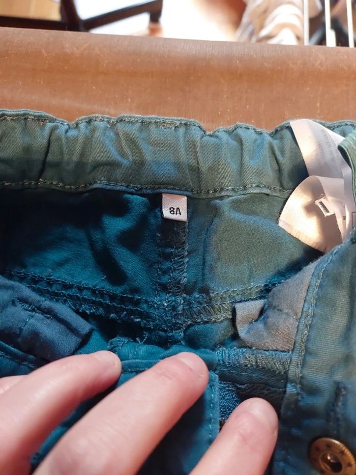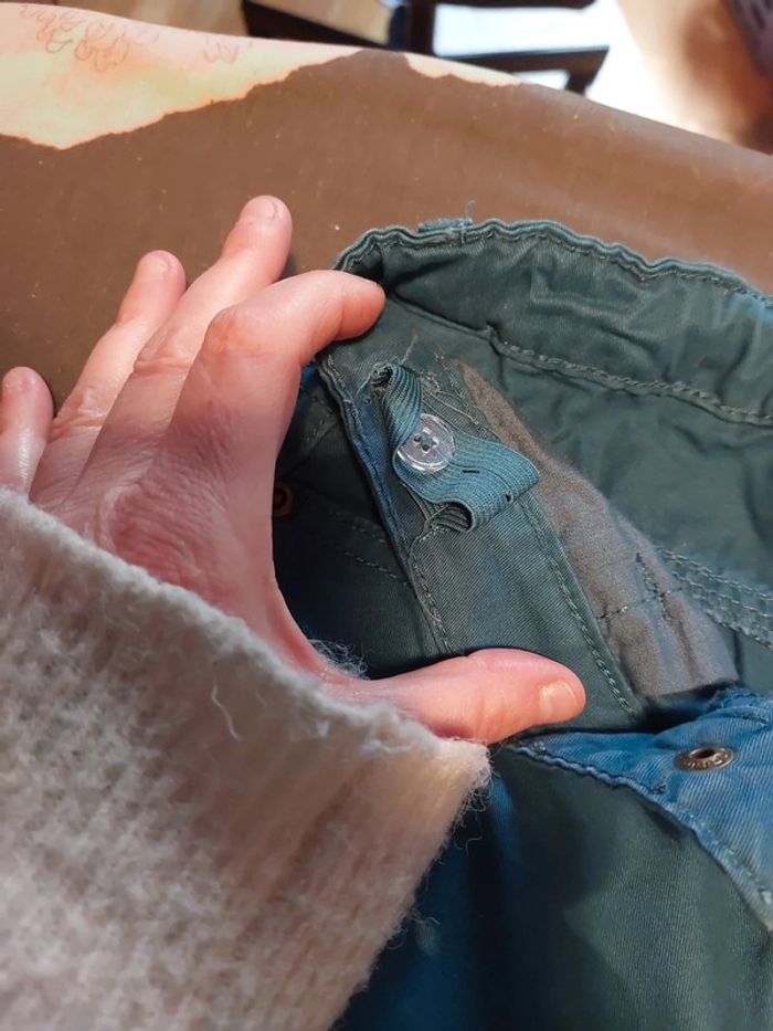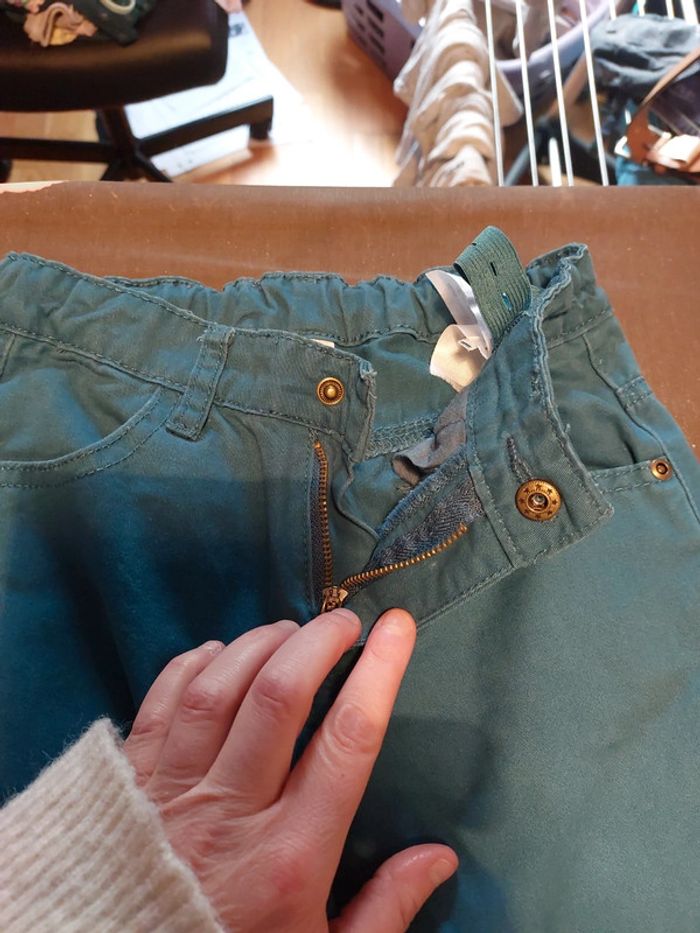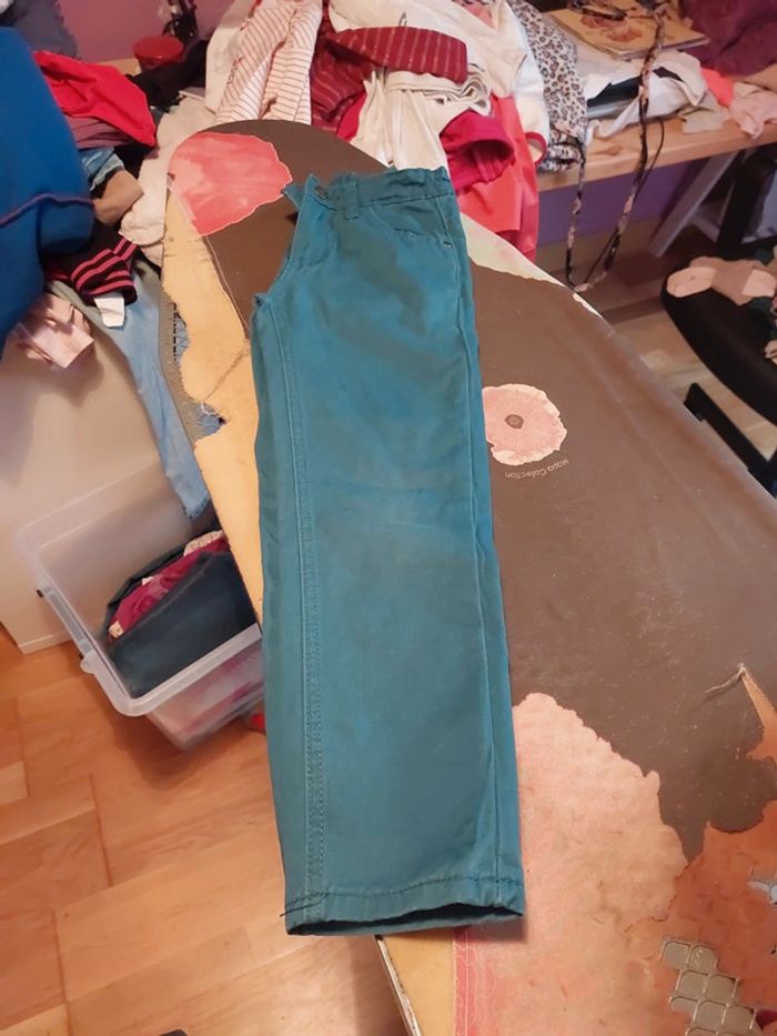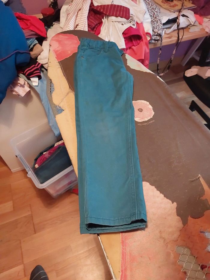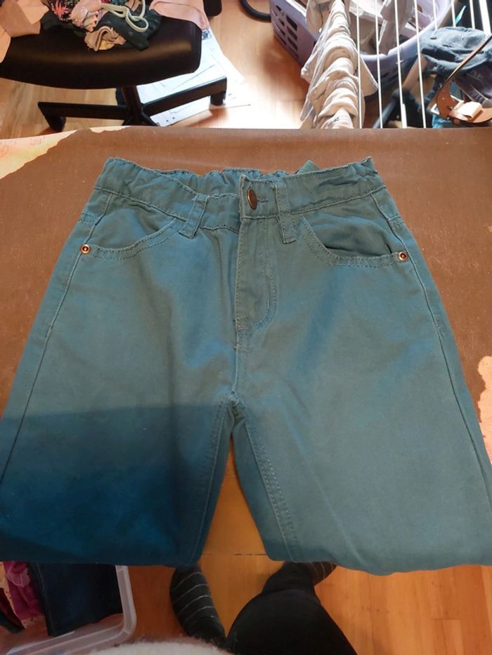 Pantalon droit bleu canard Bouton pression et fermeture zippée Taille ajustable