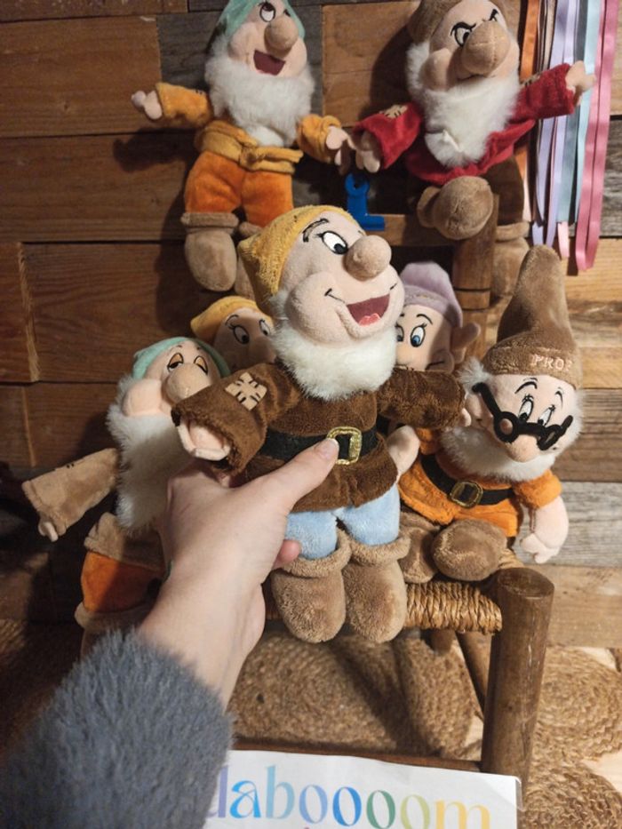 Peluches les sept nains Disney Tbe N'hésitez pas à faire un lot pour économiser sur les frais de port Pour voir les autres articles de la même catégorie : #badaboooom_peluches #badaboooom_disney #badaboooom_peluchesiconiques